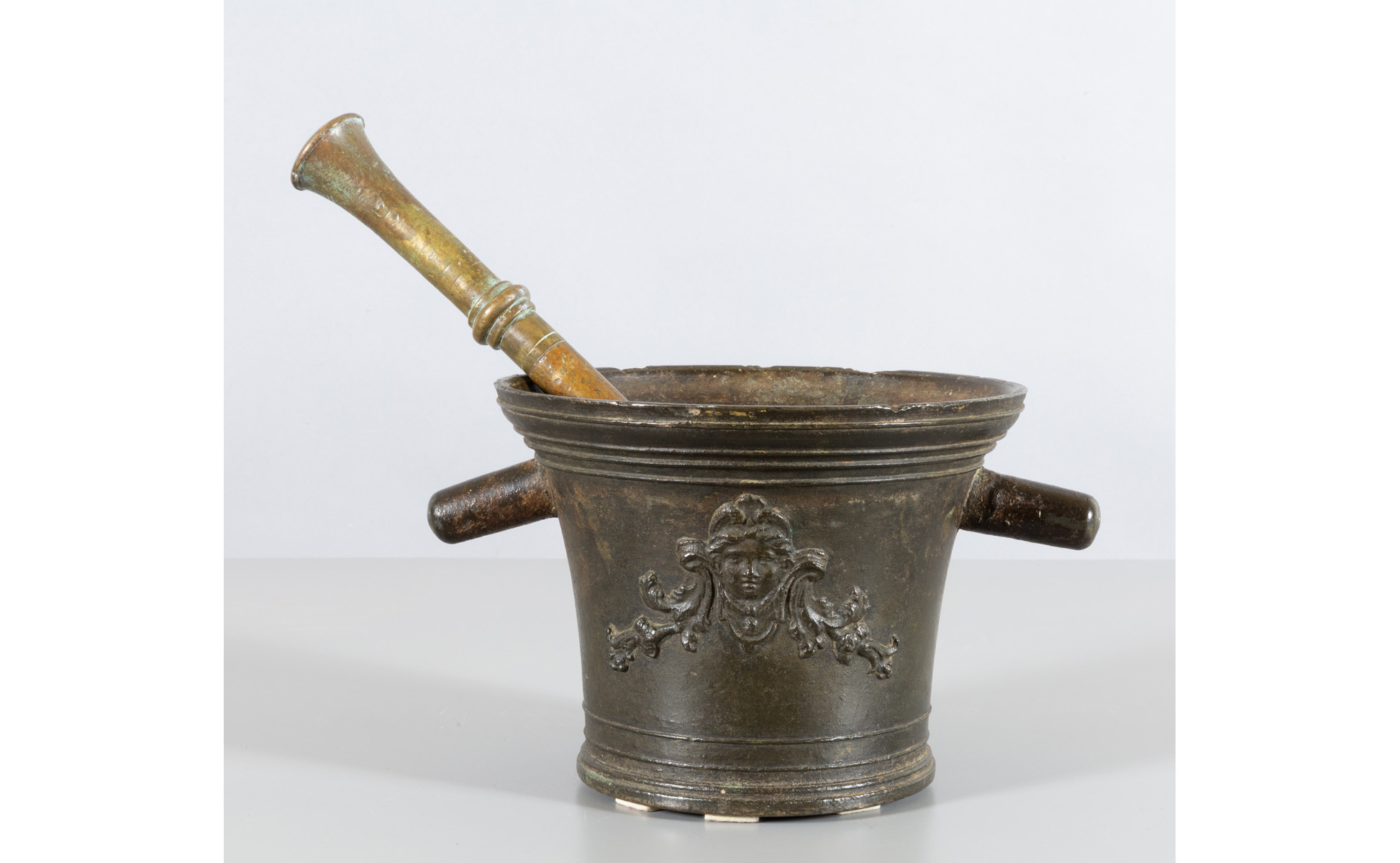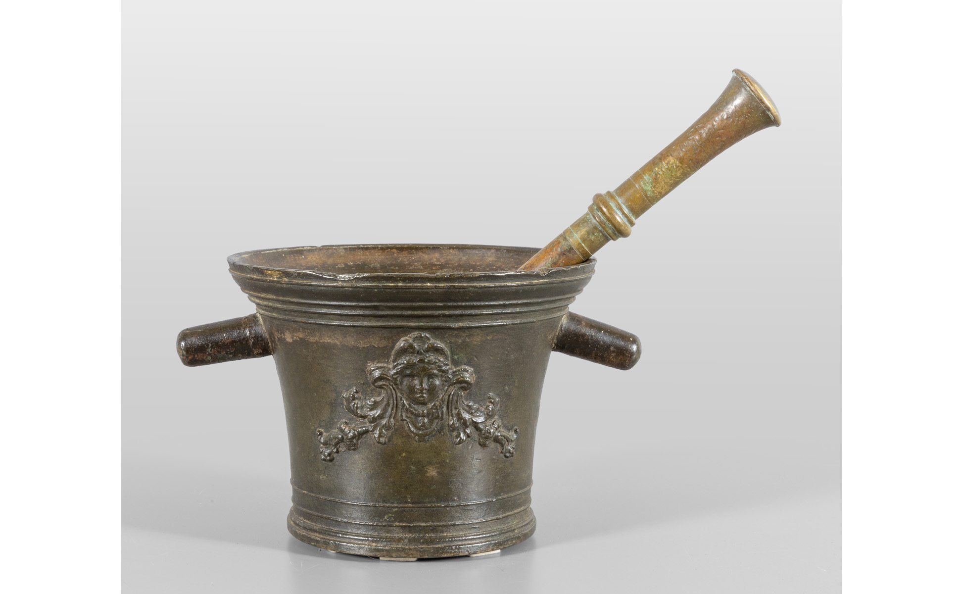 Mortaio in bronzo decorato con testa femminile sec.XVII