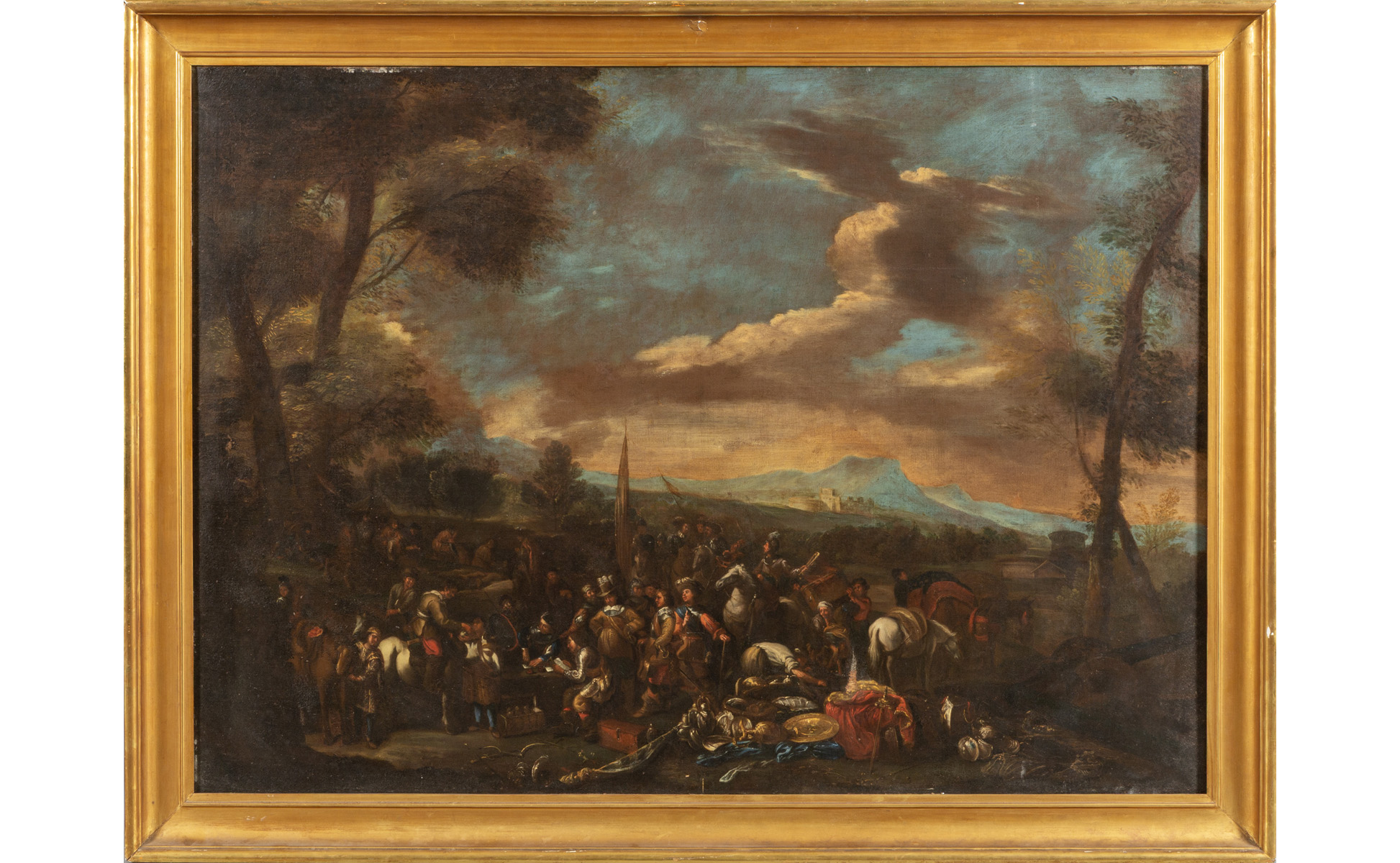 Scuola fiamminga sec.XVIII 'La spartizione del bottino' olio