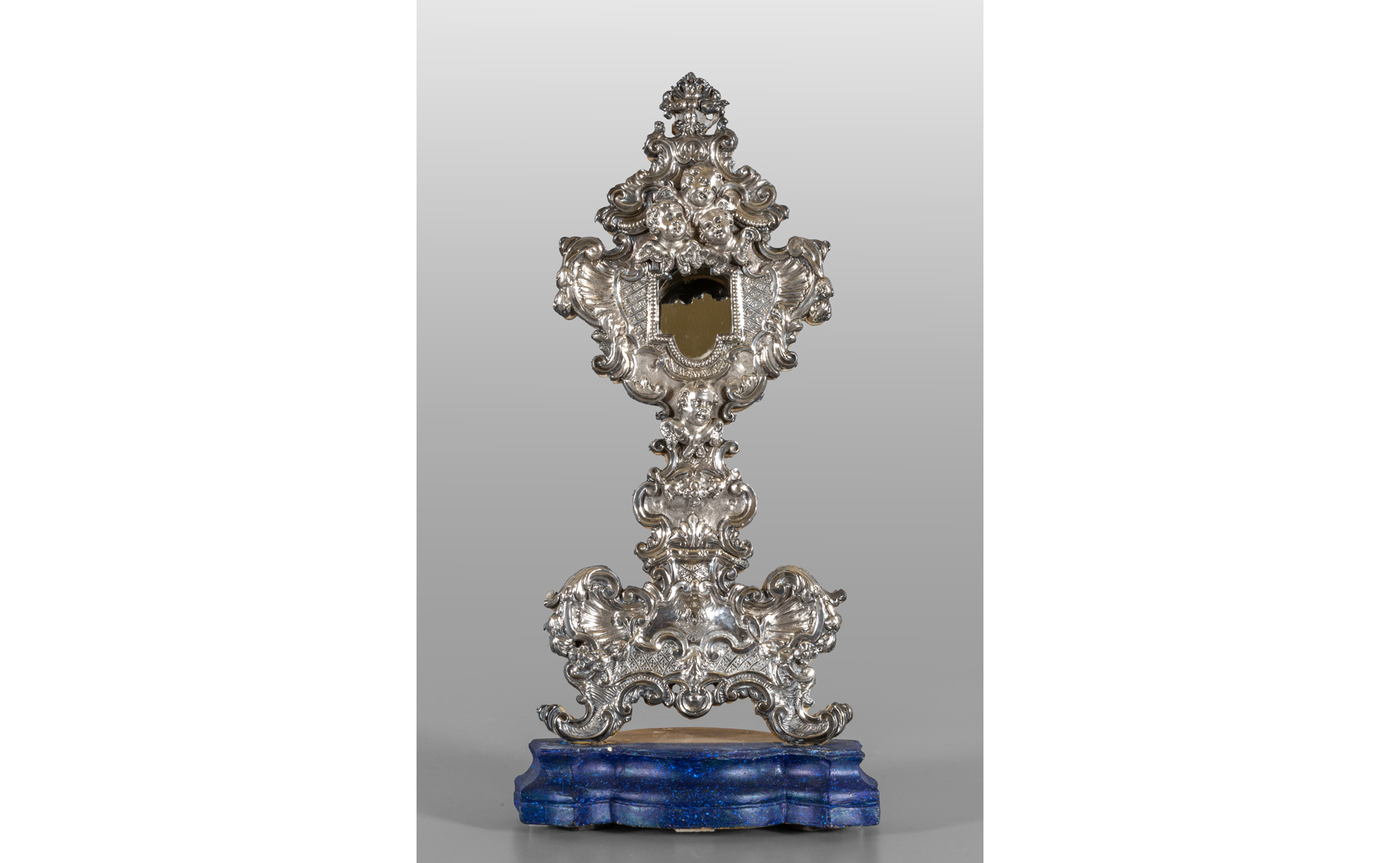 Reliquario in argento finemente sbalzato con testine di angioletti Roma sec.XVIII