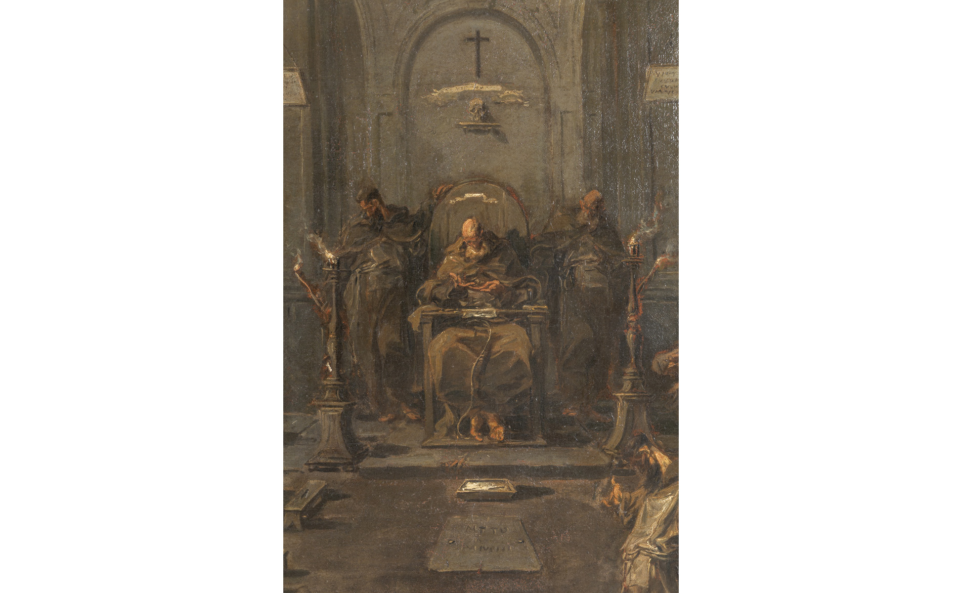 Il confronto più pertinente è proprio con i 'Monaci in contrizione davanti al confessore' conservato presso la Real Academia de Bellas Artes de San Fernando a Madrid. In entrambe le opere si riconosce la medesima capacità di Magnasco di trasformare scene di vita religiosa quotidiana in visioni quasi drammatiche dove l'architettura gotica diventa quinta teatrale e le figure si moltiplicano in un brulichio di gesti e movimenti. La tecnica esecutiva è analoga: pennellate filamentose che costruiscono le figure per tocchi rapidi creando quell'effetto di vibrazione luminosa che pervade l'intera composizione.