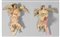 Coppia di angeli testa in terracotta policroma mani e piedi in legno policromo occhi in vetro abiti in seta Napoli sec.XVIII