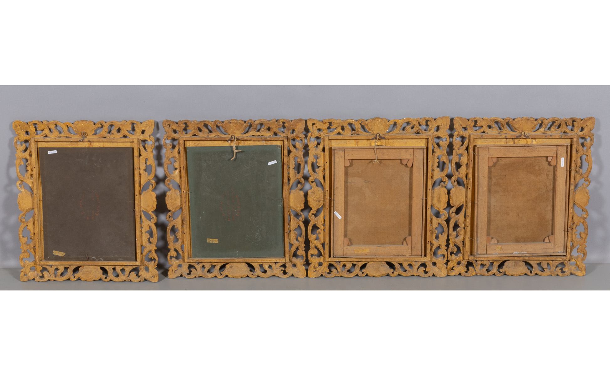 quattro olii di forma ovale cornice coeva in legno finemente intagliato e dorato