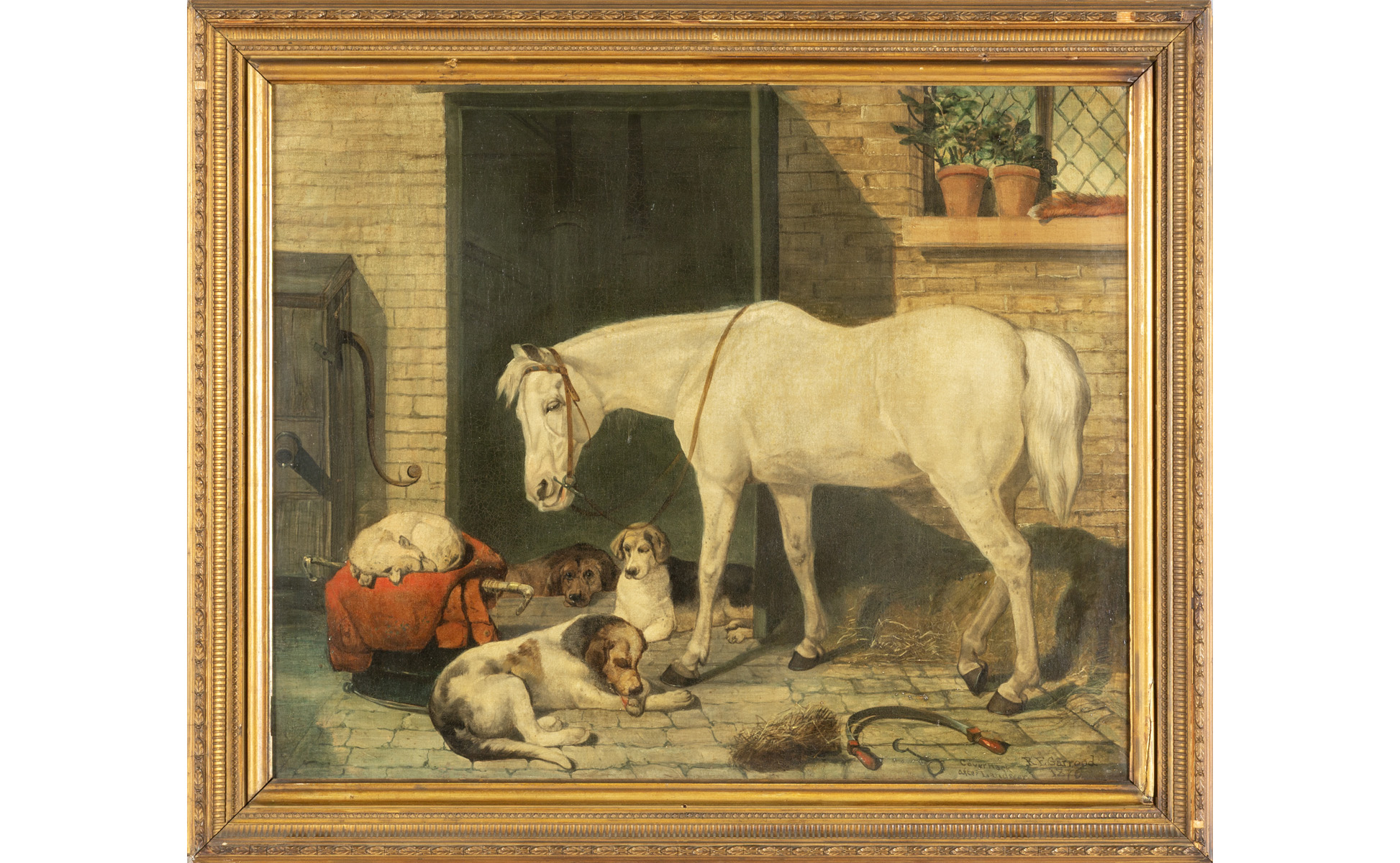 Cavallo bianco con beagle