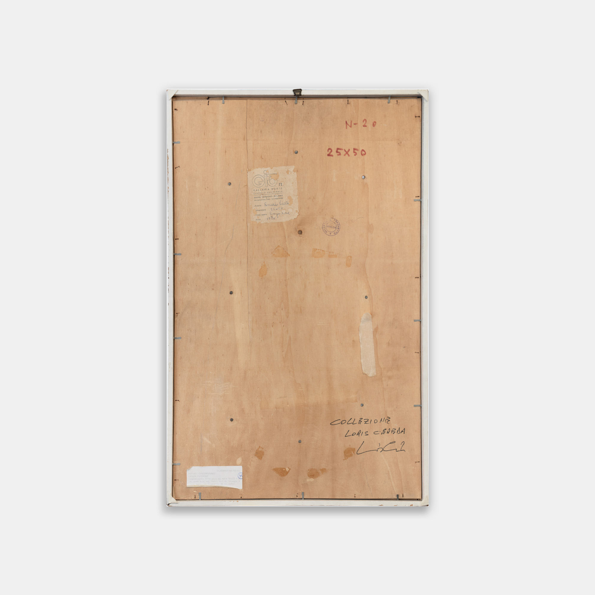 Etichetta della Galleria d'arte Gi3, Seregno sul retro