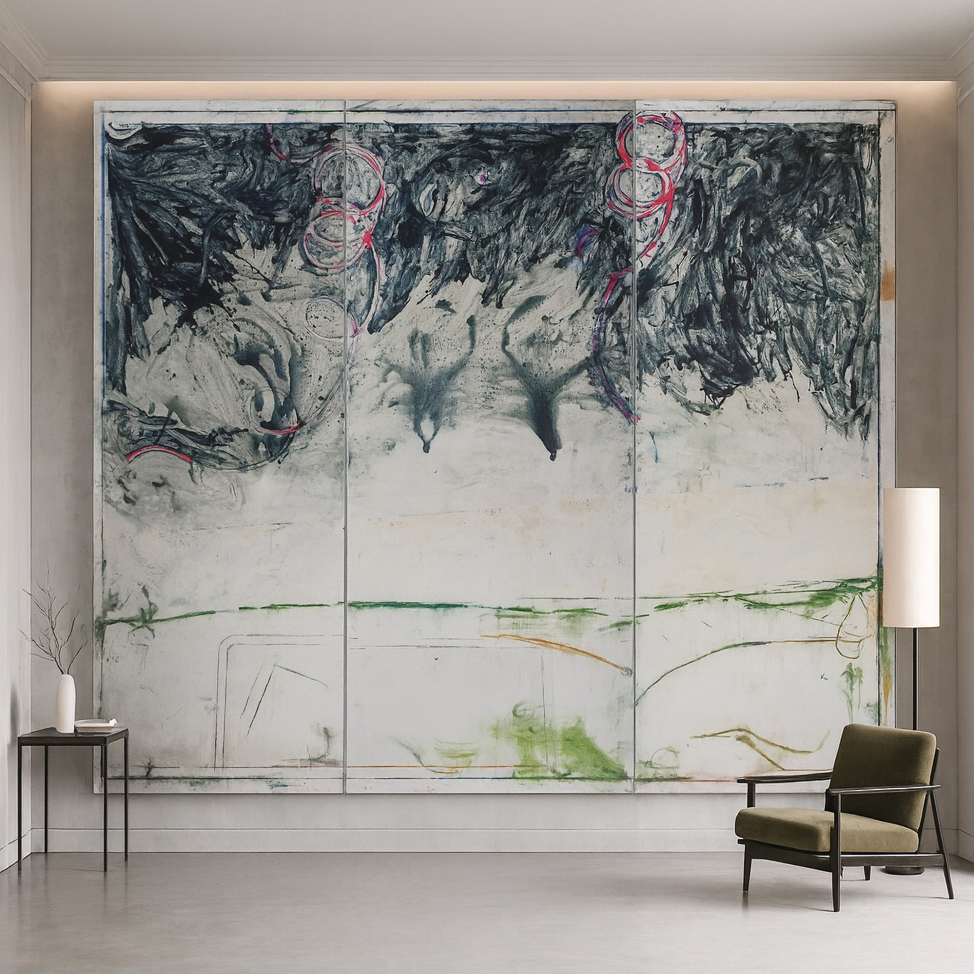 L'opera si compone di 3 pannelli che misurano cm 120x300 cad.
