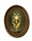 con raffinata lavorazione a filigrana, raffigurante una margherita. La spilla è presentata all’interno di una teca ovale in legno.