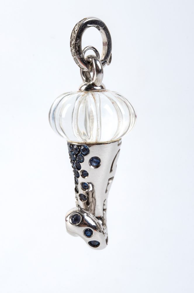 CHANTECLER Ciondolo Cornetto in oro con zaffiri, diamanti e cristallo di rocca