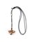 tre sonagli in oro rosa 9k sospesi ad un suporto in tessuto a cordonetto.