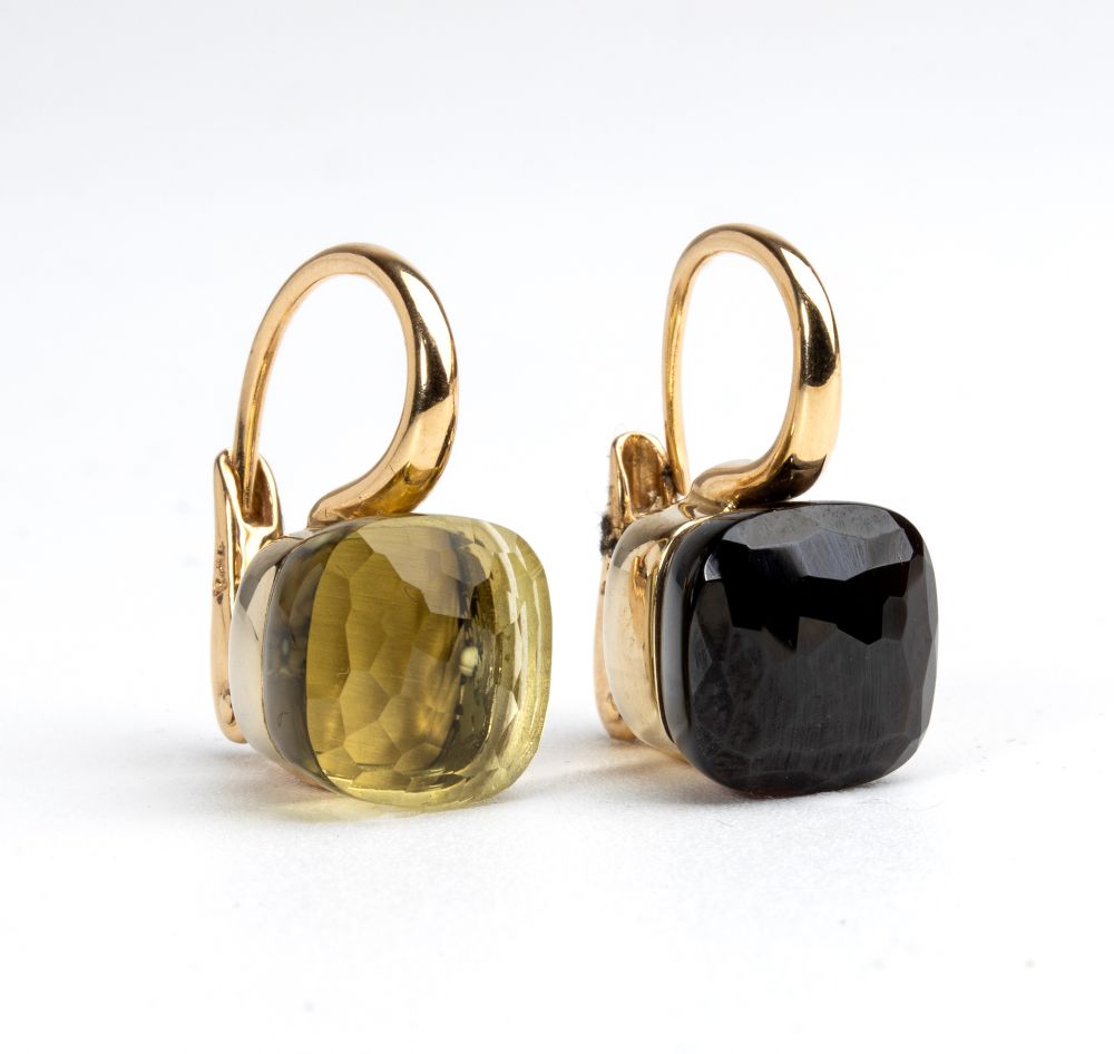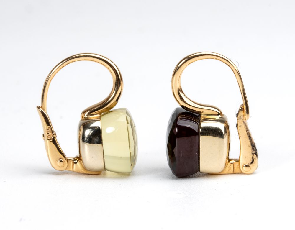 POMELLATO Collezione "Nudo": paio di orecchini in oro con granato e quarzo