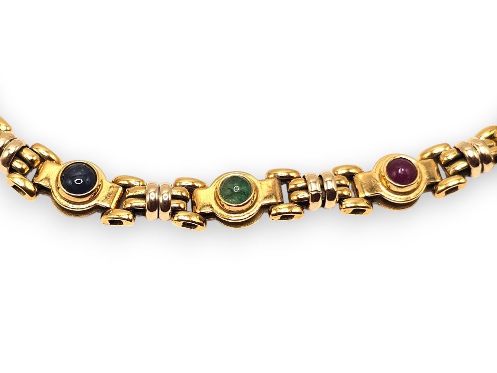 Bracciale in oro con rubini, zaffiri e smeraldi