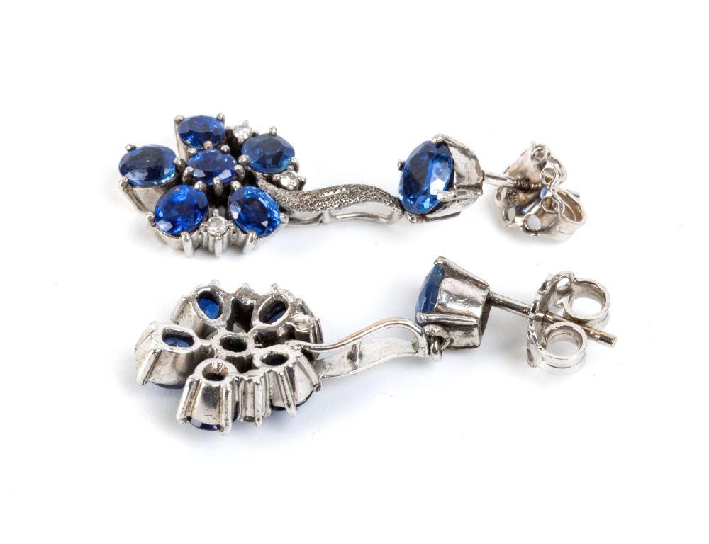 The sapphires of blu color strong saturation, medium tone, slightly, included.