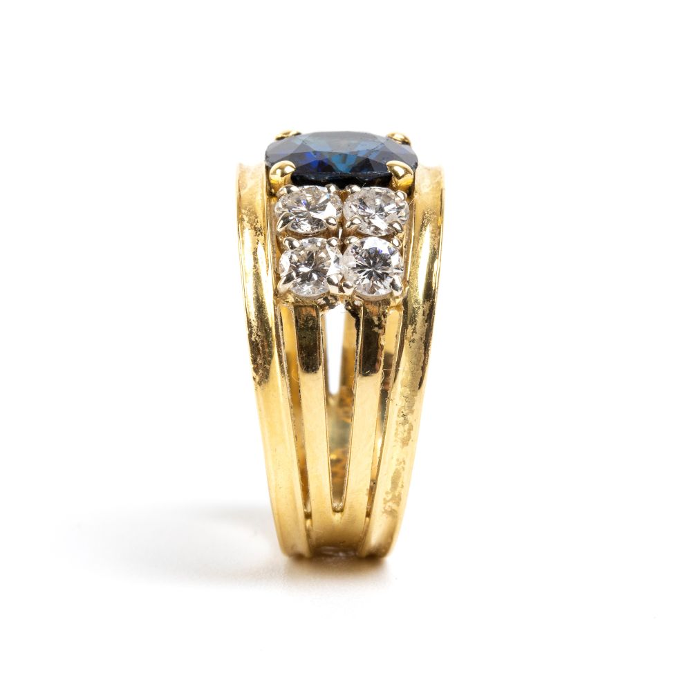 Lotto 136 | Anello a fascia in oro con zaffiro e diamanti
