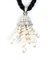 pendente con motivo a nappa in oro bianco 18k, micro perle e dettagli in diamanti, frangia in perle coltivate d'acqua salata.
