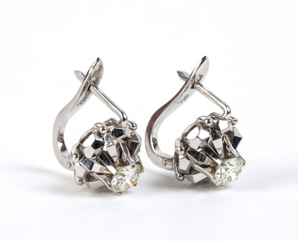in oro bianco 18k, incastonato con 2 diamanti stimati per un peso totale di circa 0.60 ct, colore J-K, purezza VVS.