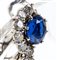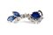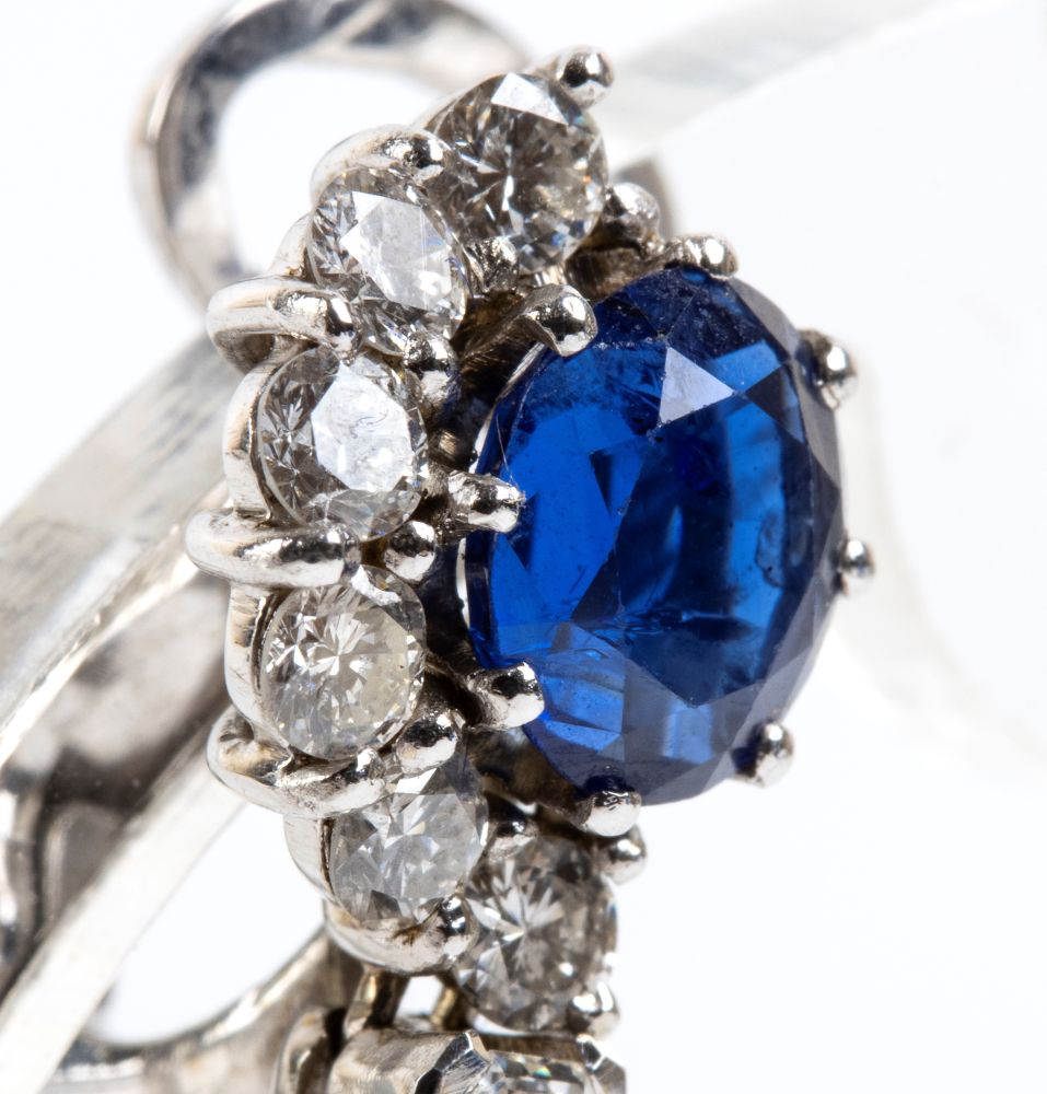 in oro bianco 18k, ciascuno con zaffiro ovale circondato da nastro in diamanti e navette di zaffiro e diamante in motivi di foglie.
