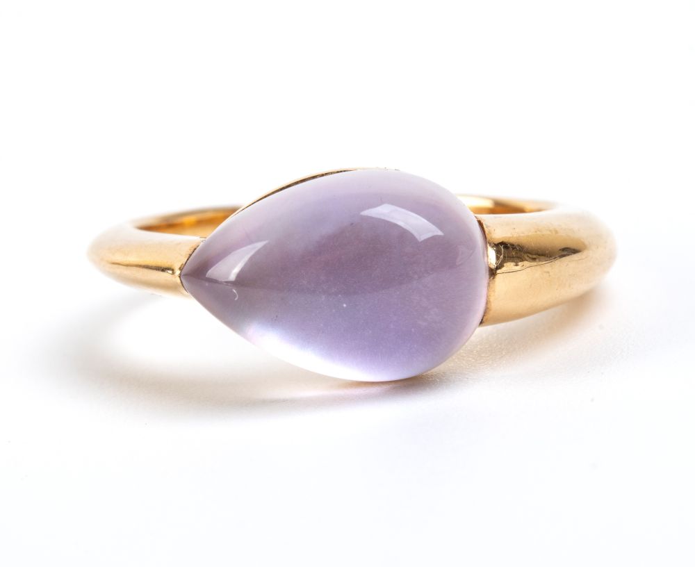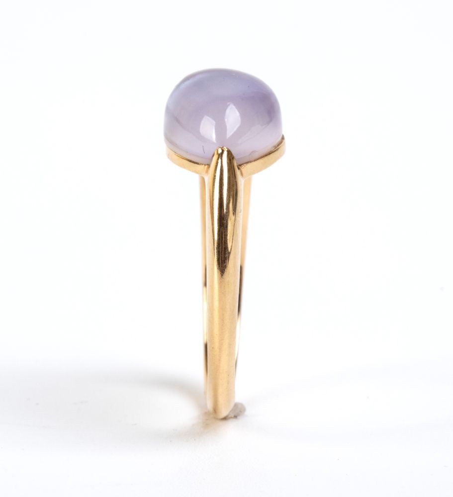 in oro giallo 18k, incastonato con cabochon di calcedonio.