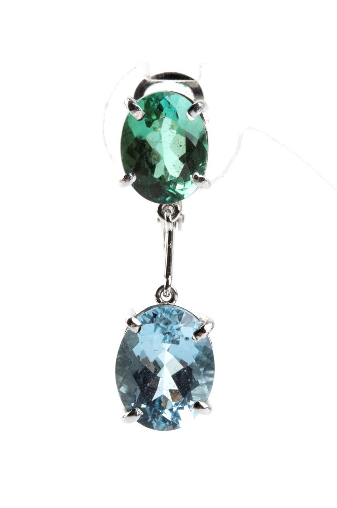 in oro bianco, ciascuno incastonato con una acquamarina ed una tormalina.