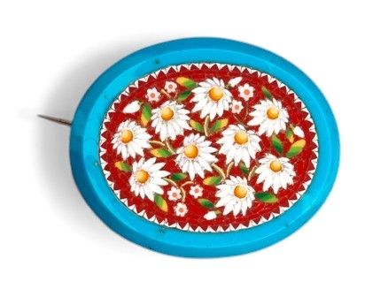 decorazione floreale a margherite, con piccole tessere in materiale vitreo.