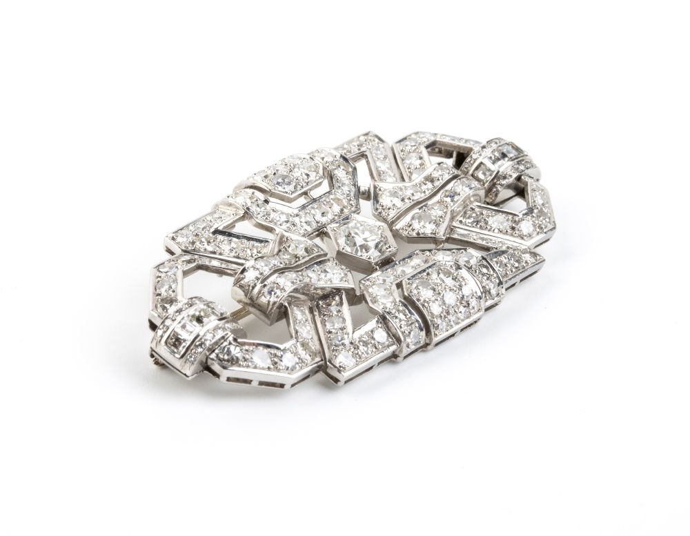 Spilla in stile Art Decò in platino con diamanti Anni '50