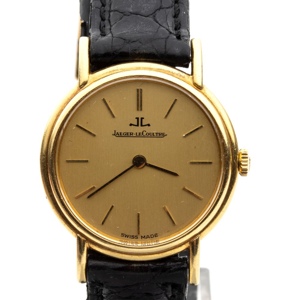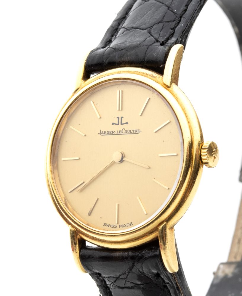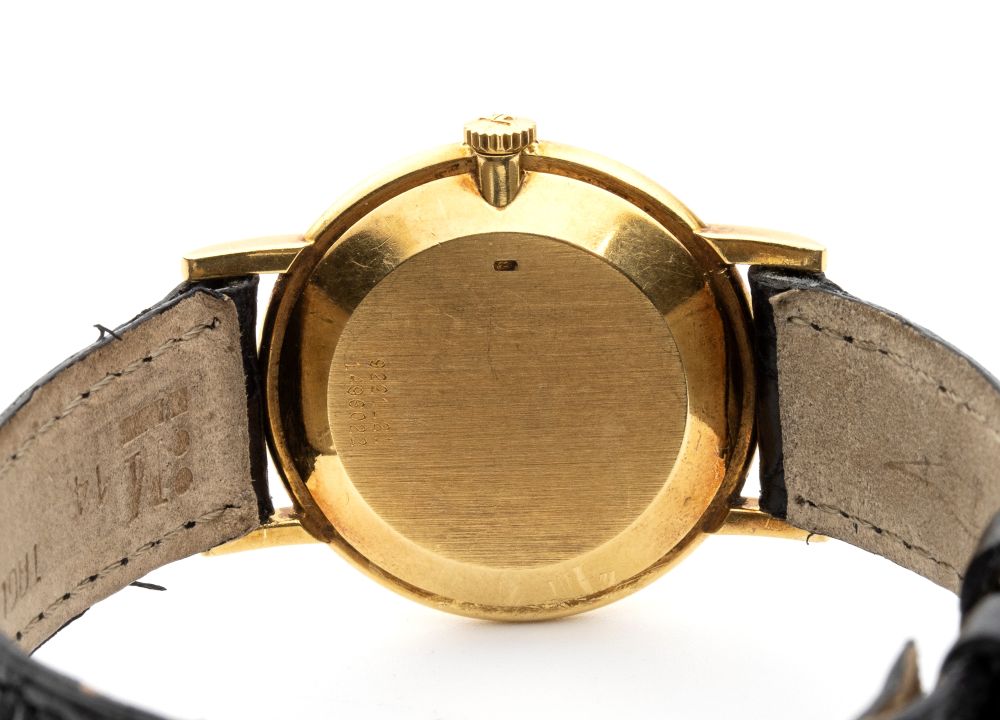 con cassa in oro, quadrante champagne con indici dorati. Movimento meccanico manuale, cinturino e fibbia commerciale. Calibro 895, referenza 9221.21, matricola 1496022.