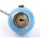di forma sferica, in argento con smalti nei toni dell'azzurro su fondo guilloché. Movimento Iuvenia a carica manuale con scappamento a cilindro dieci rubini, quadrante con numeri arabi.