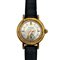 cassa in oro giallo 18k e quadrante argentè, vetro plastica, movimento meccanico a carica manuale.