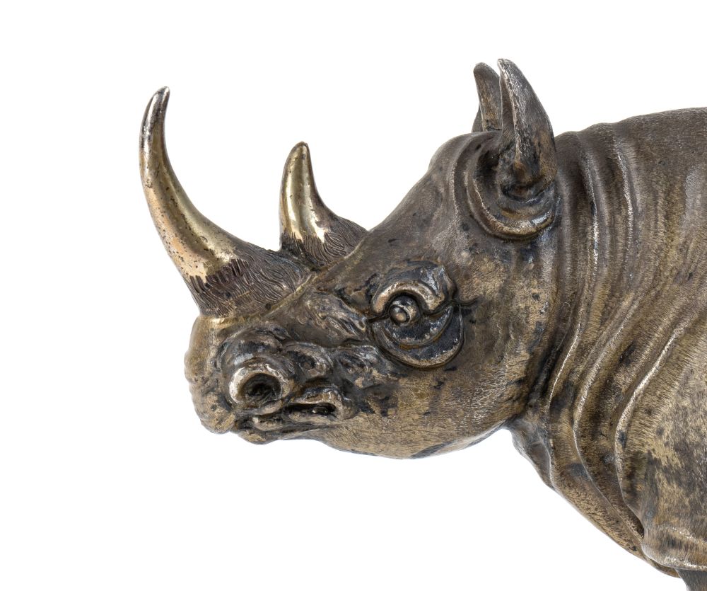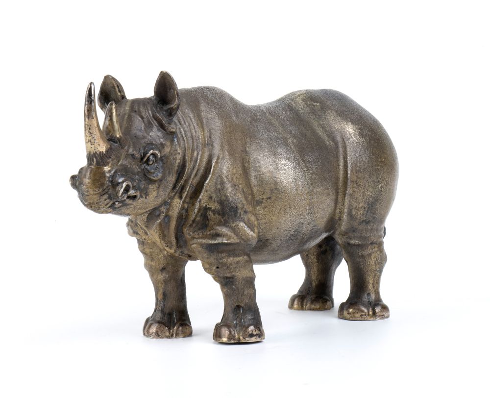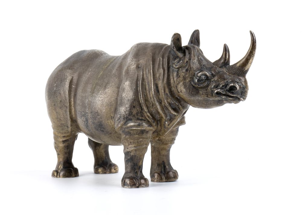 Lotto 318 | Rinoceronte in argento Italia, XX secolo Altezza x larghezza x profondità: 15,5 x 8 x 28 cm. Peso: 2300 gr.