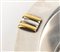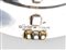 di forma circolare dal design minimalista e moderno. L'oggetto presenta un'ampia tesa piatta e una profonda vasca centrale lucida. L'elemento distintivo è il dettaglio decorativo sull'orlo che è per l'appoggio per la sigaretta, realizzato con fasce in dorate e argentate.