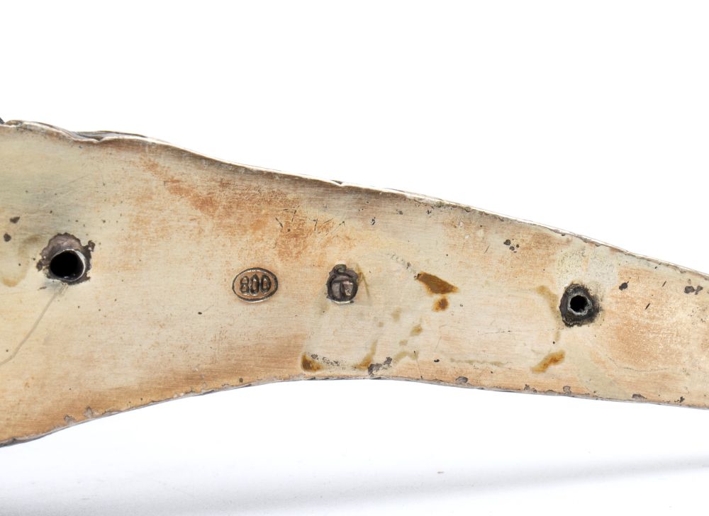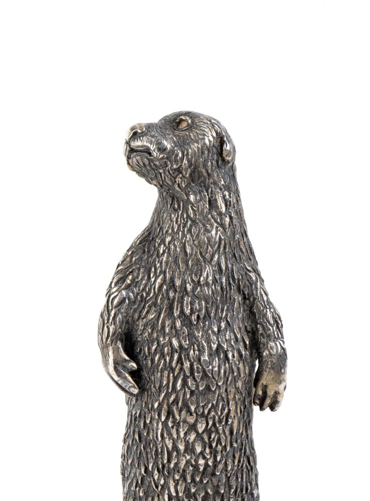 Lotto 333 | Lontra in argento Italia, XX secolo Altezza x larghezza x profondità: 17 x 6 x 14 cm. Peso: 410 gr.