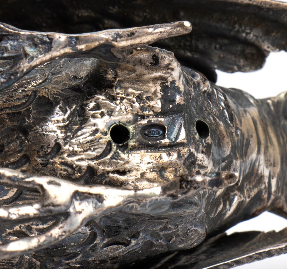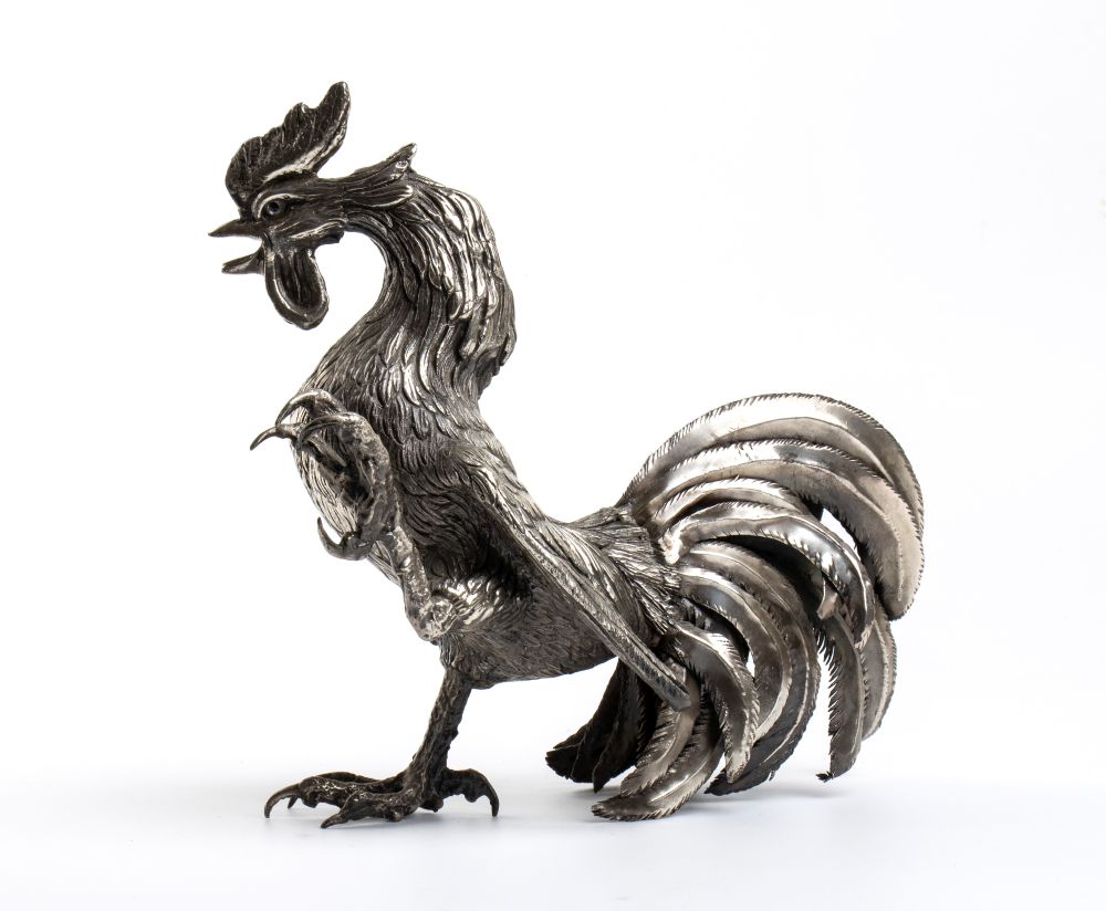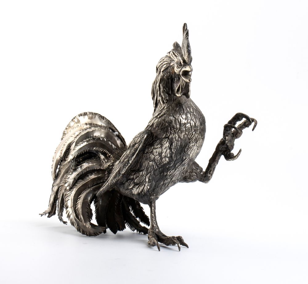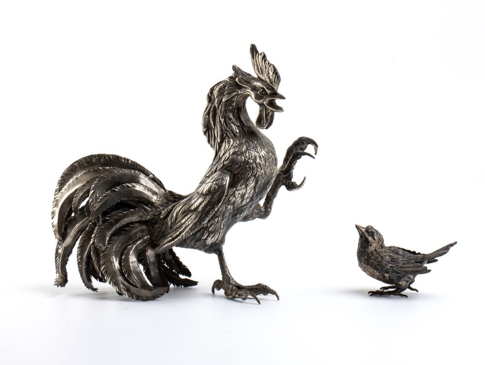Gallo e passero in argento Italia, XX secolo Peso complessivo: 930 gr.