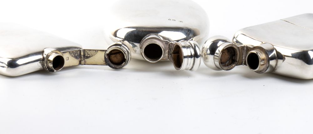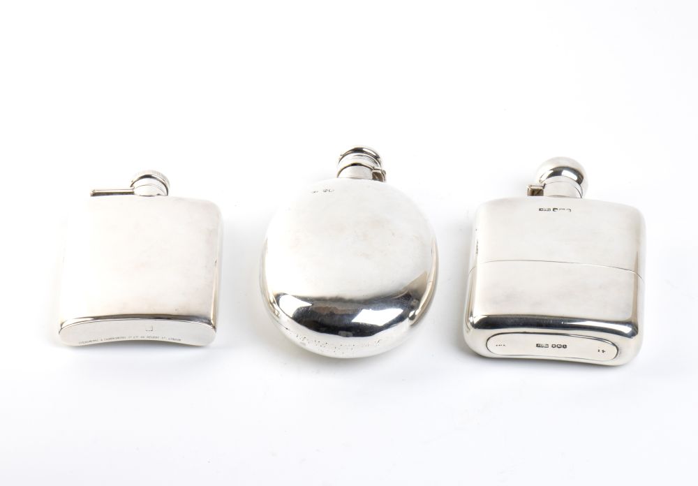 Lotto composto da 3 fiaschette inglesi in argento Inizio XX secolo Peso complessivo: 580 gr.