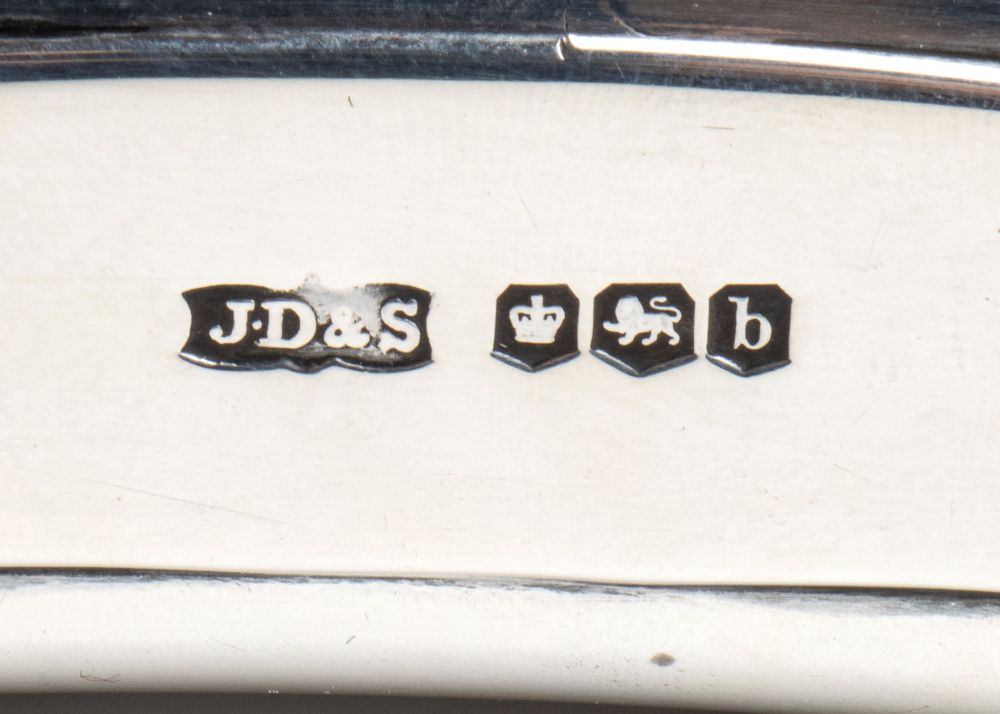 3 - Fiaschetta rettangolare con spigoli smussati e superficie liscia e lucida. Sheffield 1919-1920, argentiere James Dixon & Sons Ltd