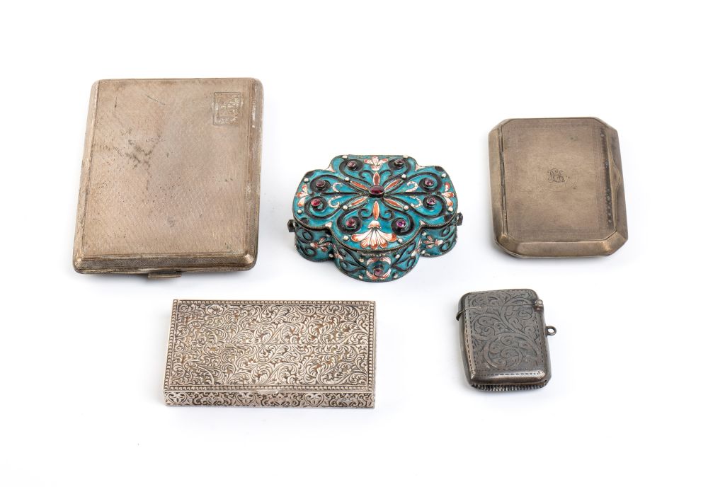 Lotto di 5 scatoline in argento XX secolo Peso totale: 381 gr