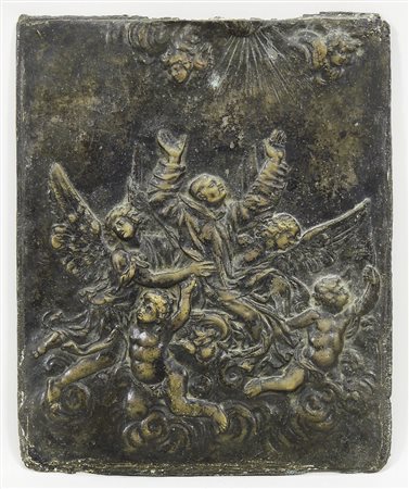 PLACCA A BASSORILIEVO IN BRONZO raffigurante Santo in gloria con angeli cm...