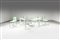 Tavolo con struttura in alluminio, piano in cristallo sagomato, molato e bordo specchiato.