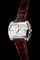 Cassa in acciaio di forma con fondello avvitato. Quadrante argento con secondi continui al 3 e 30 minuti cronografici al 9.