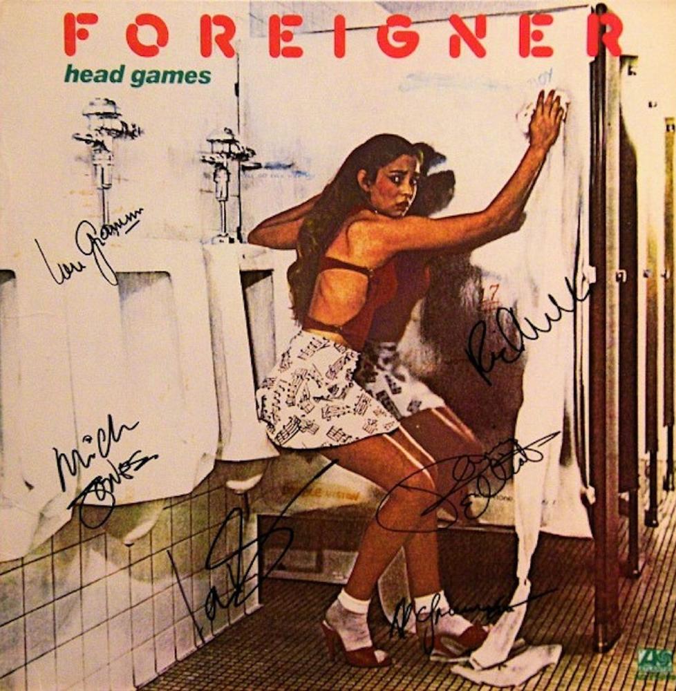 Foreigner Head Games 1979 signed album autographed by Mick Jones, Lou Gramm, Dennis Elliott, Ian McDonald, Rick Wills and Al Greenwood