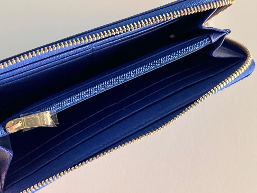 Furla Babylon XL Zip around L wallet in ocean blue leather. High quality embossed leather L-shaped zip-wallet with coin purse, 2 large card sections with eight slots for excellent storage capacity. Brand new with tags in original box with dustbag