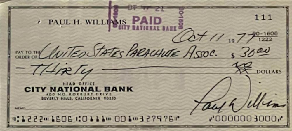 Paul Williams signed 1977 check