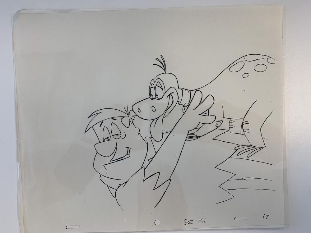 The Flintstones original Fred Flintstone & Dino cartoon artwork sericel. 10x12 inches