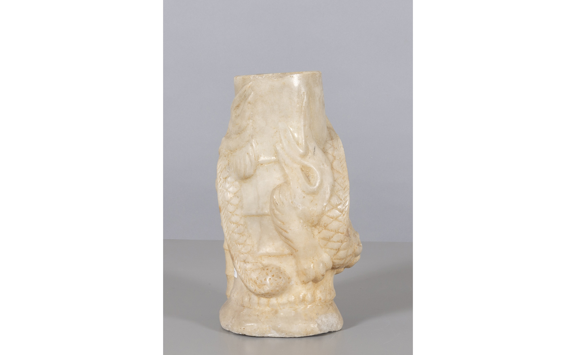 Vaso in marmo bianco scolpito con figura di drago Cina sec.XIX