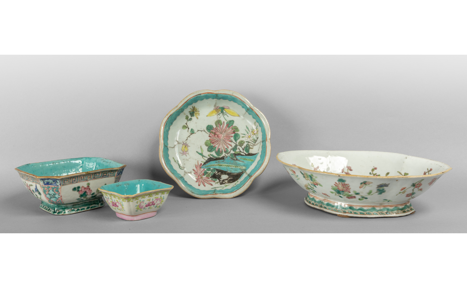 Quattro ciotole in porcellana policroma di varie forme e misure Cina se.XIX