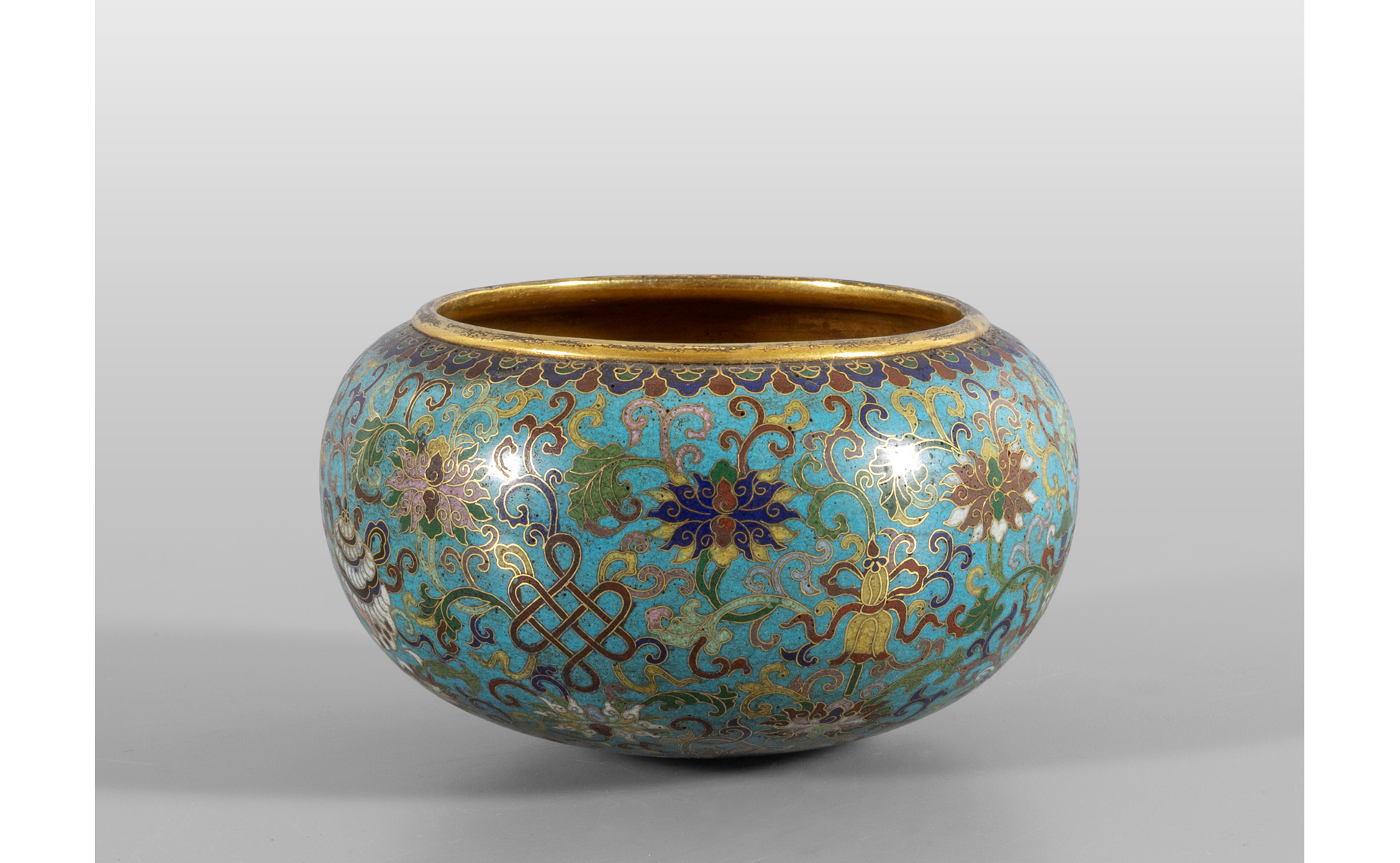 Coppa in bronzo cloisonné decorata a motivo floreale Cina sec.XIX
