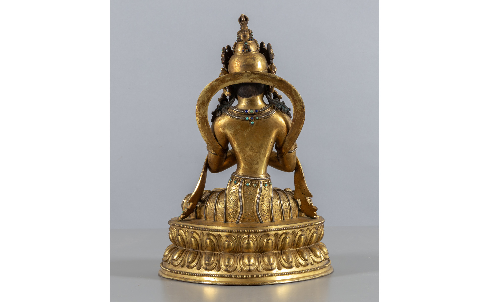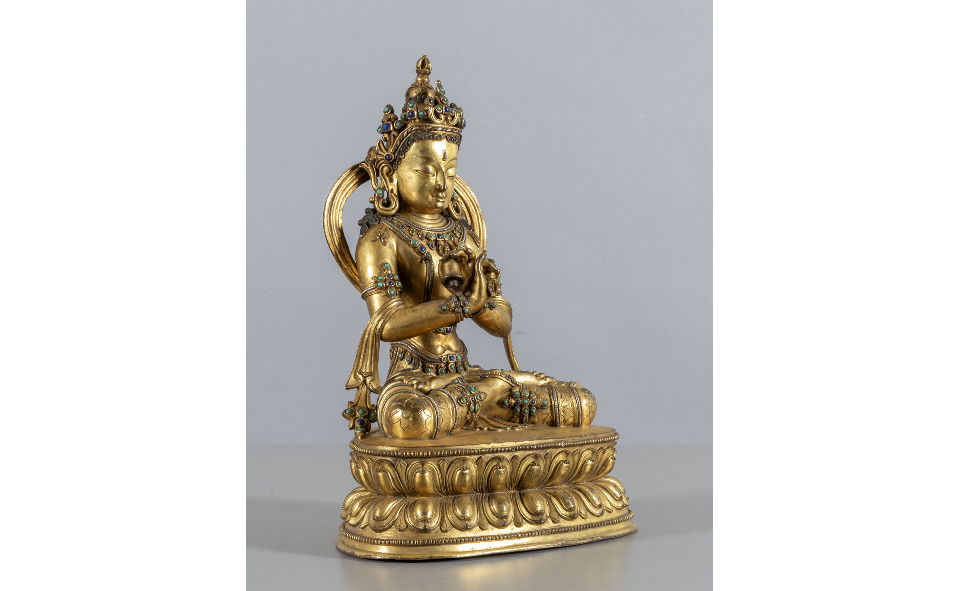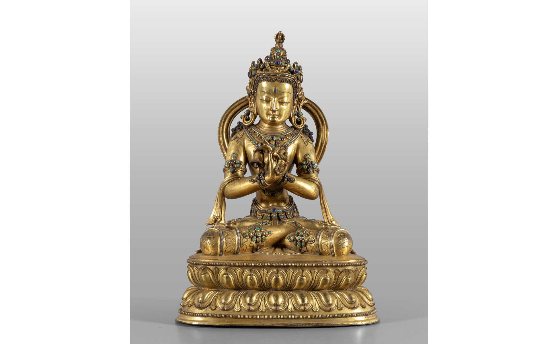 Scultura in bronzo dorato raffigurante Vajirasattva con un vajra nella mano destra e un ghanta nella sinistra Tibet sec.XIX