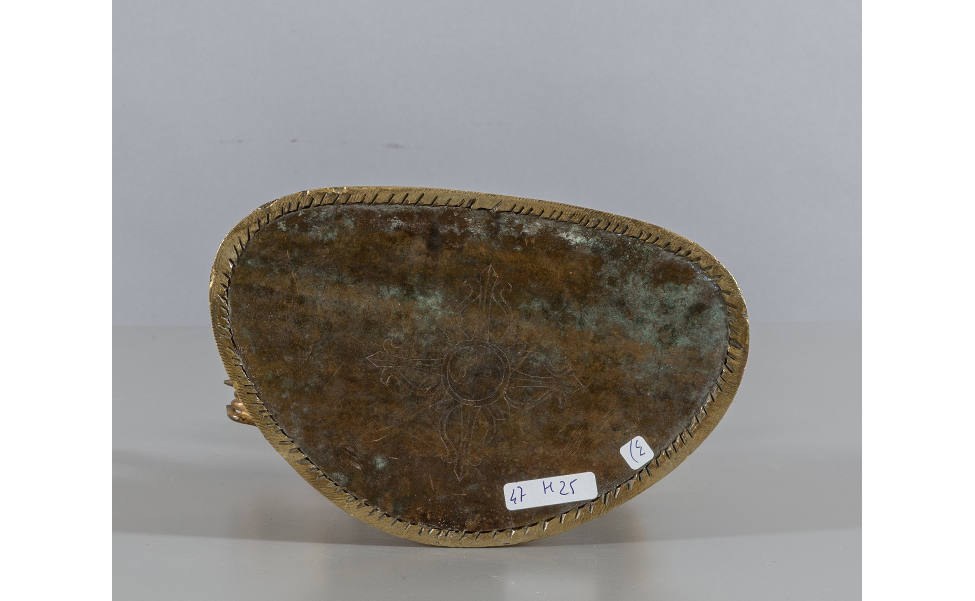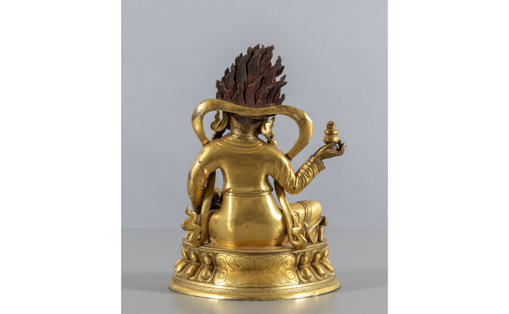 Scultura in bronzo dorato con topolino in mano Cina sec.XIX