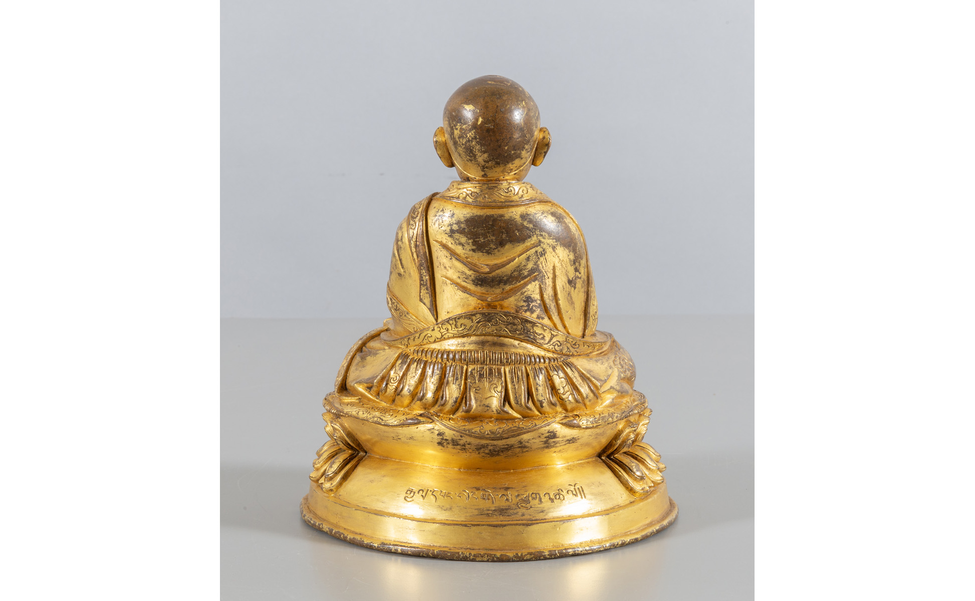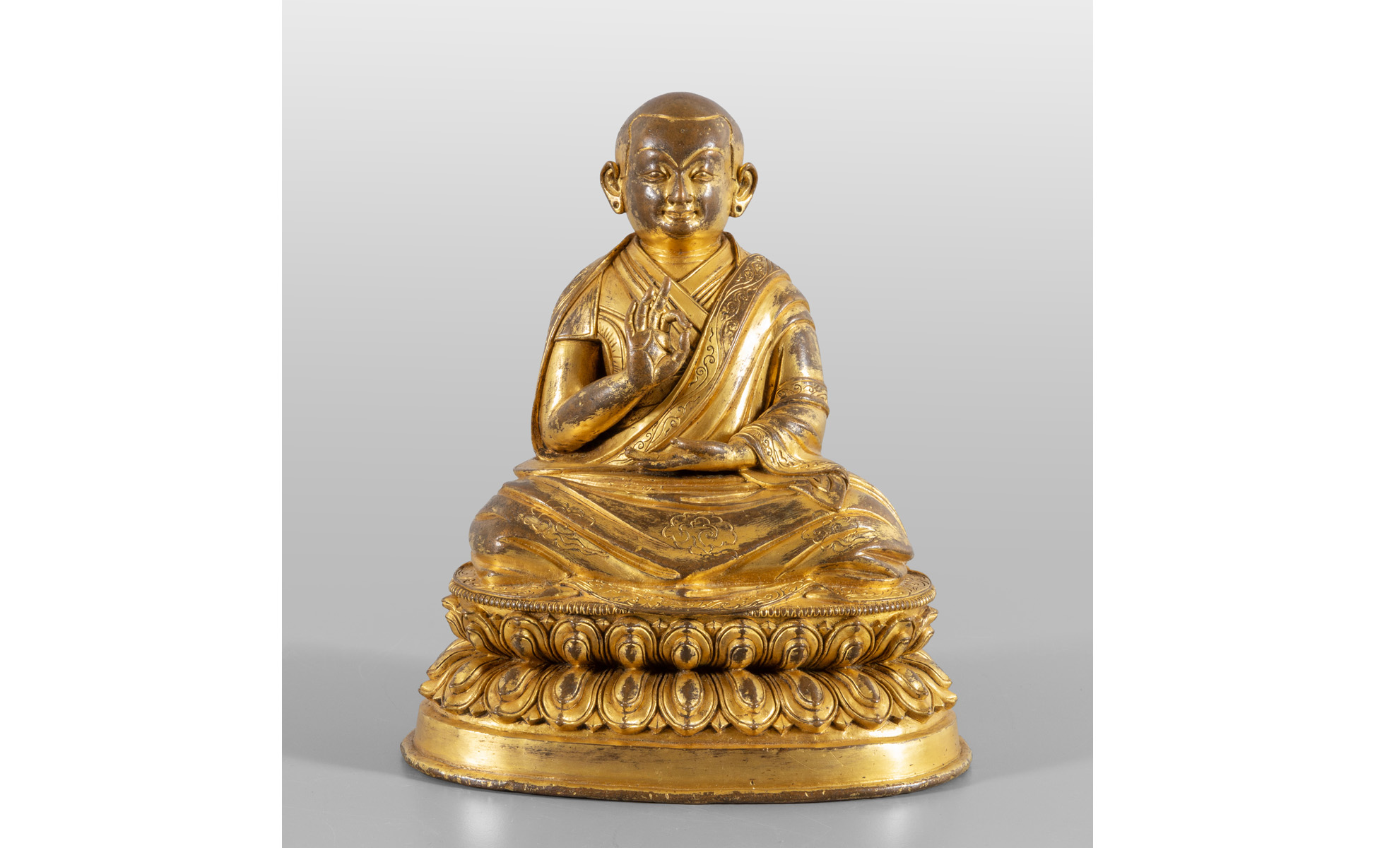 Scultura in bronzo dorato raffigurante maestro buddista Cina sec.XIX