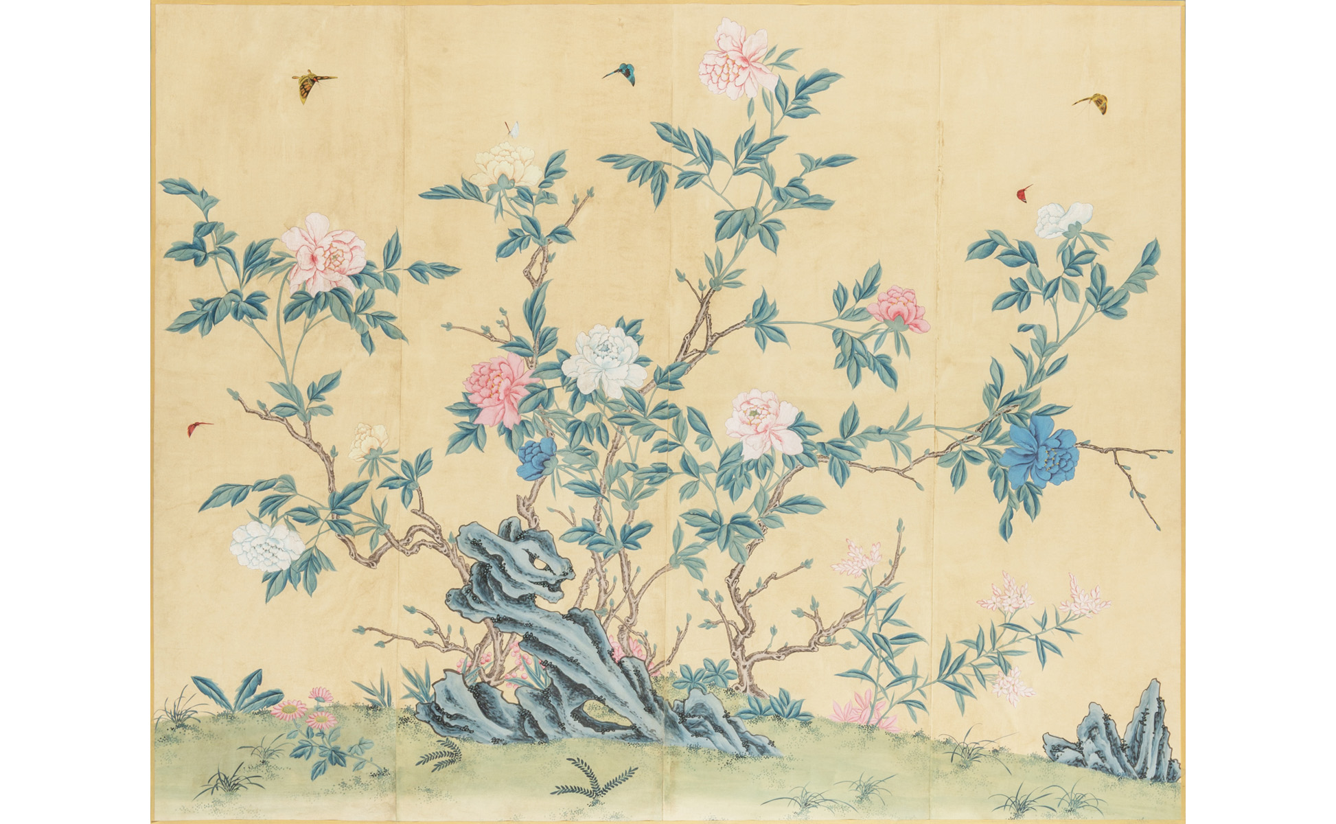 Pannello su carta raffigurante fiori e uccelli Cina sec.XX