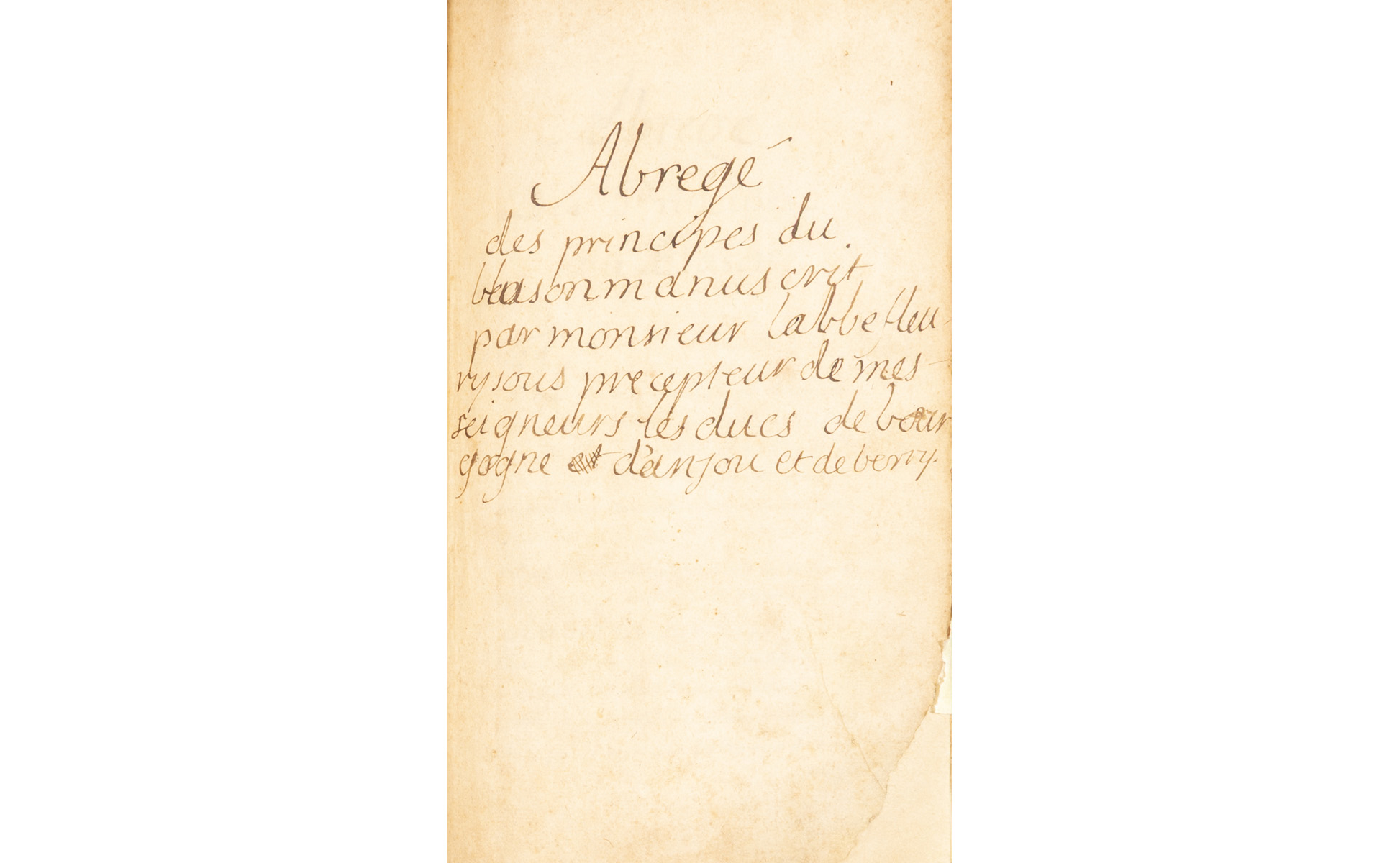 Claude Fleury Abrégé des principes du blason manuscrit par l'abbé Fleury sous-précepteur de mes seigneurs les ducs de Bourgogne d'Anjou et de Berry.