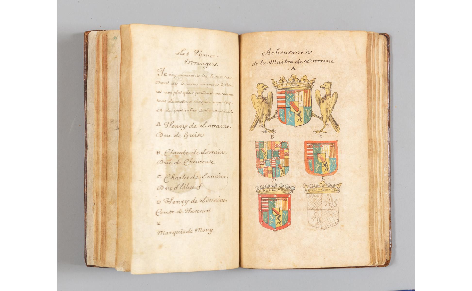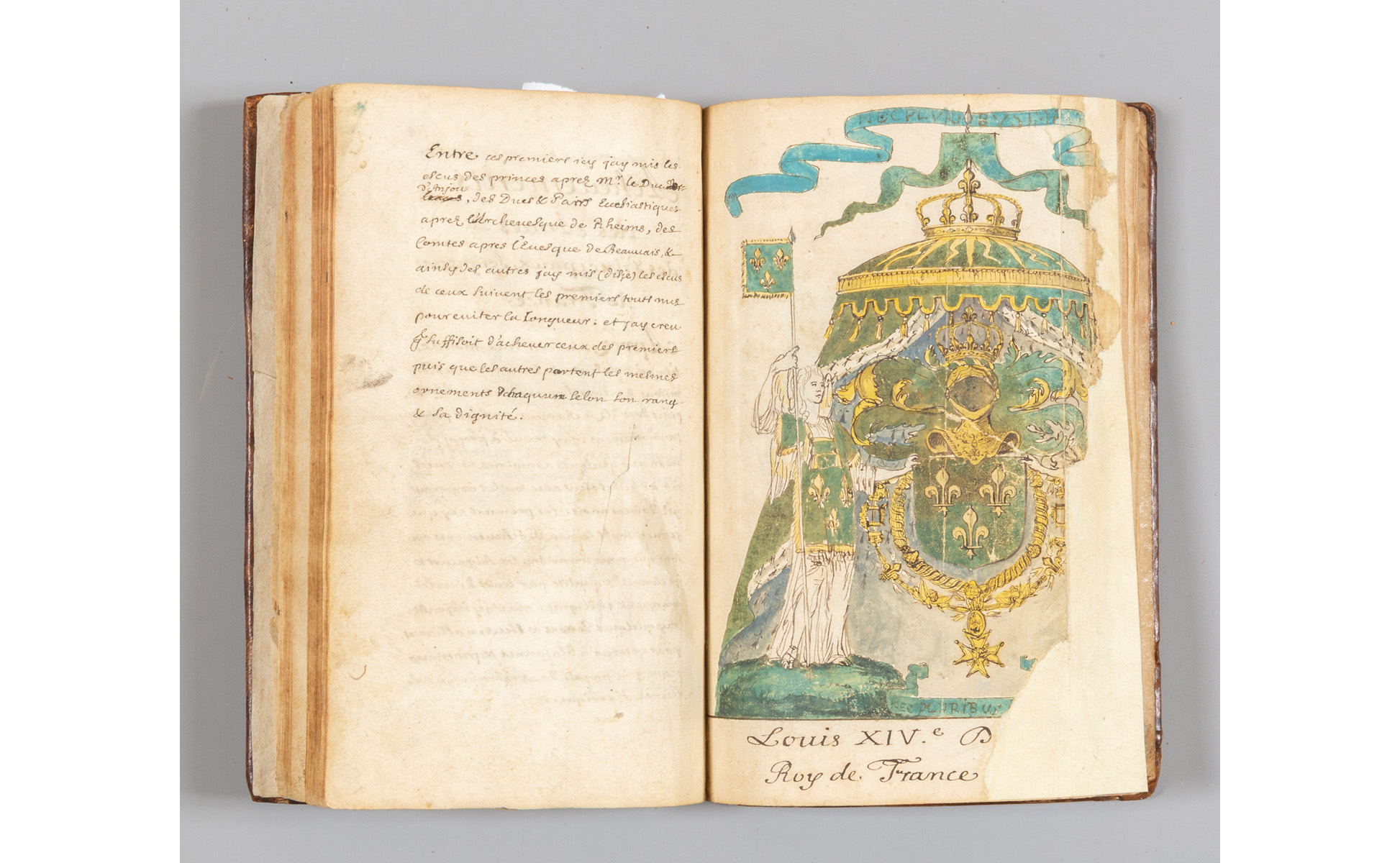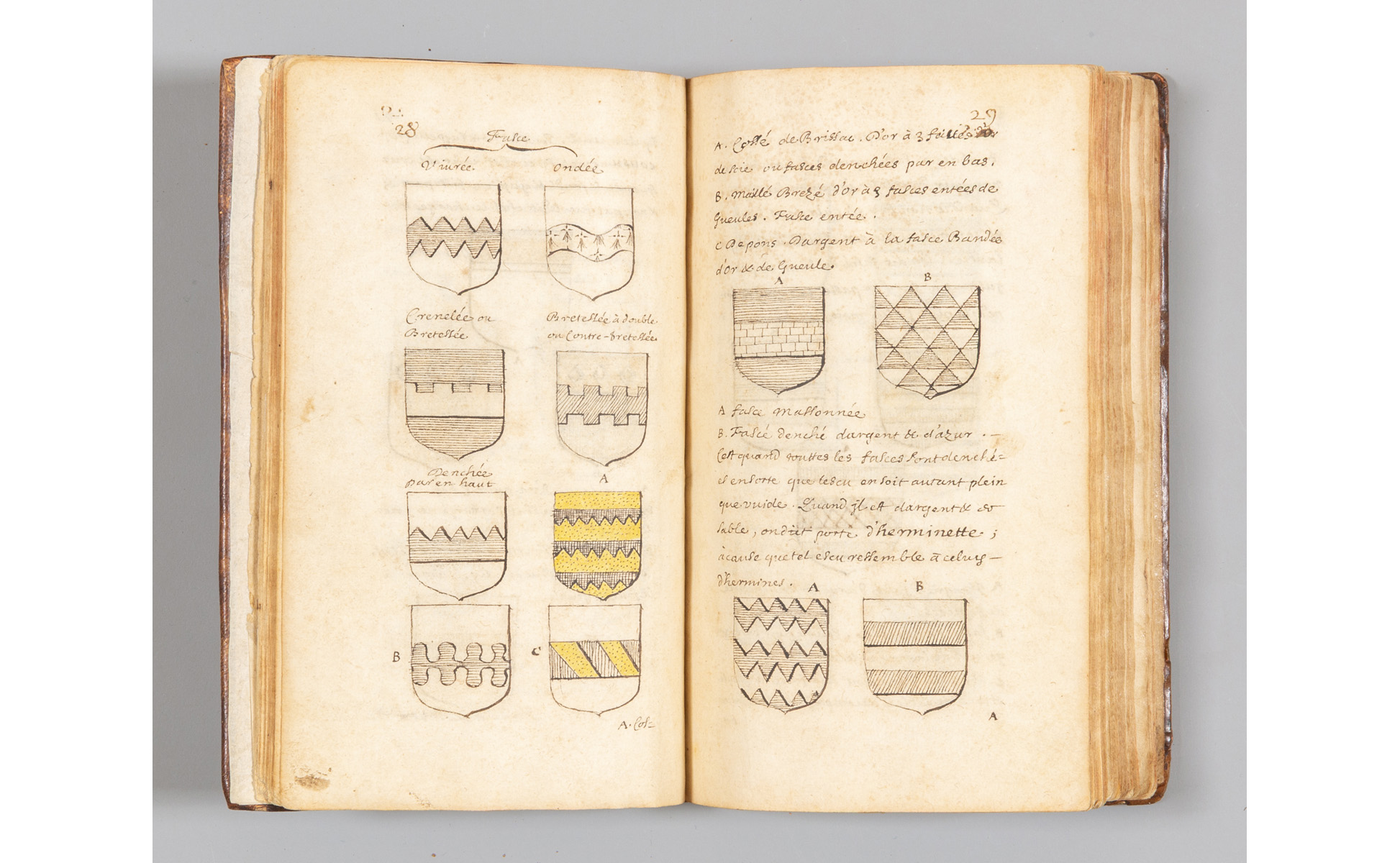 Manuale di araldica interamente autografo dell'abate Claude Fleury (1641-1723) sotto-precettore tra il 1689 e il 1705 dei figli del Grand Dauphin nipoti di Luigi XIV e più tardi confessore di Luigi XV. Fu autore dell'importante Histoire ecclésiastique (1691-1720) tradotta in seguito in italiano e tedesco.