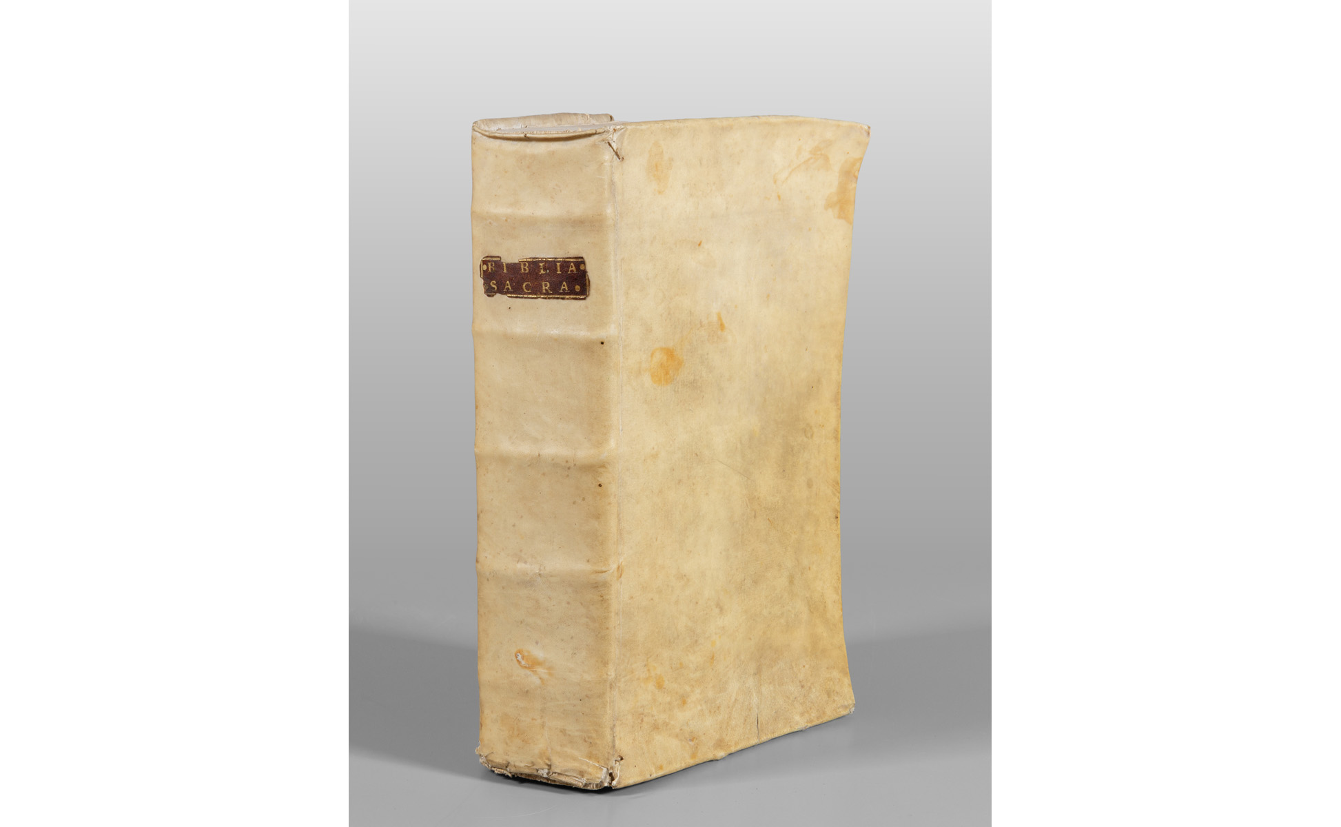 Legatura in pergamena rigida coeva con dorso a cinque nervi e tassello rosso. Cerniera anteriore lenta. Antiporta rifilata di circa mm 150 nel margine di testa esemplare peraltro in discrete condizioni.